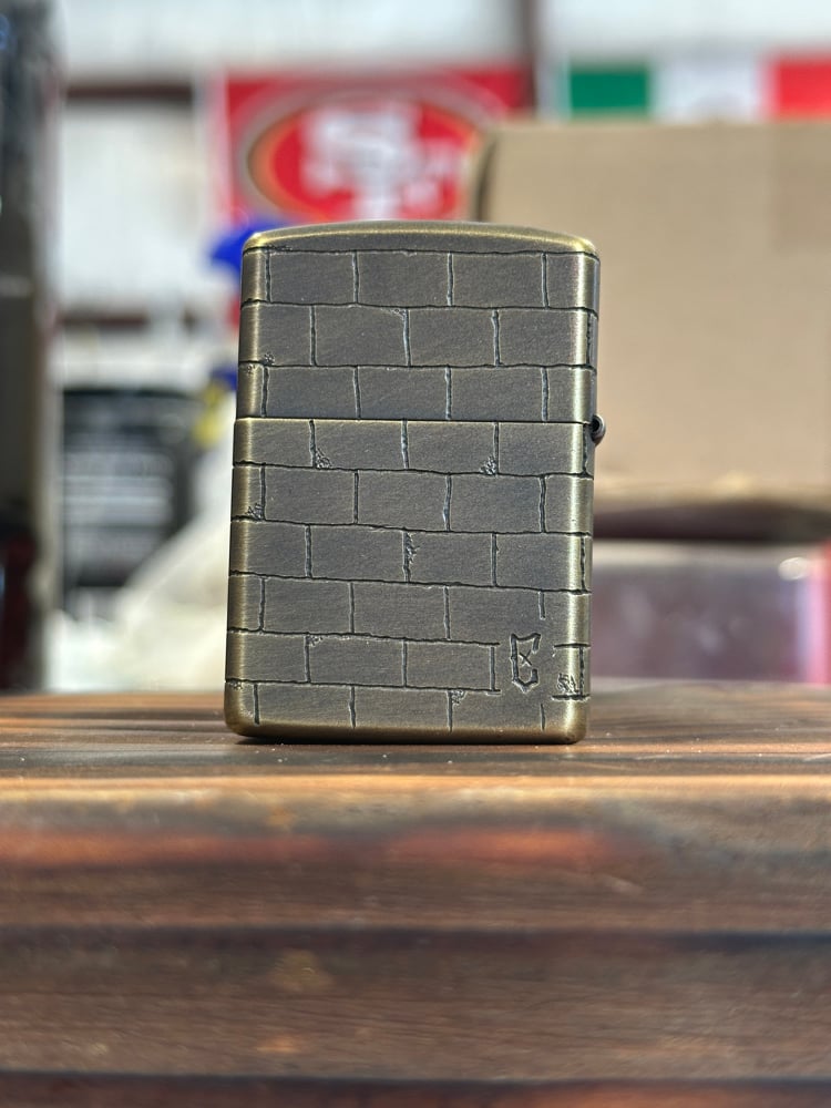 Authentic Armor Zippo hand carved brick design with brass flowers